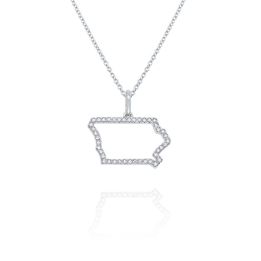 Show your pride for the 'Hawkeye State' with this adorable Iowa state necklace.