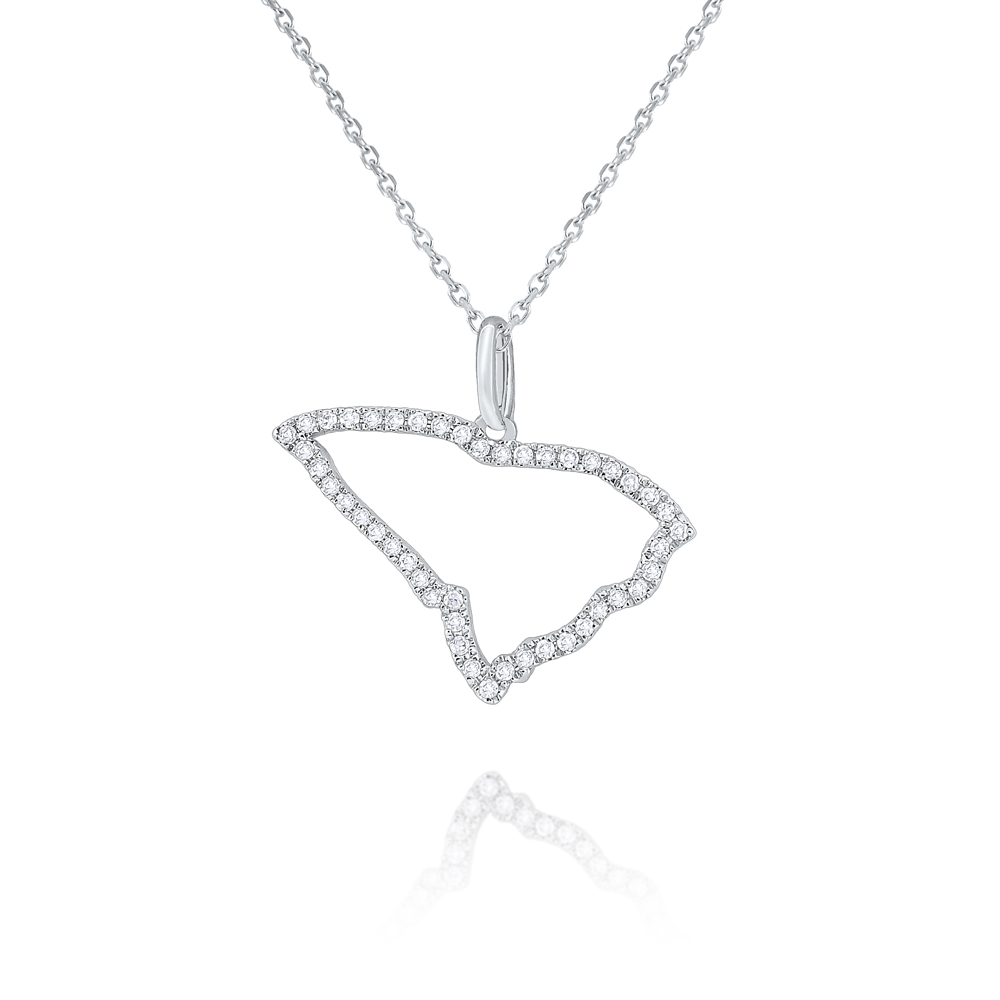 Show your pride for The Palmetto State with this adorable mini South Carolina state diamond necklace.