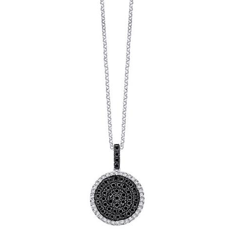 Black and white jewelry is classic and bold and it never goes out of style, adding a chic twist to anything you wear. This black and white diamond circle necklace is a stylish and dramatic statement and it is bedecked with 82 gleaming .71 ct tw diamonds. This fabulous design is shown here in white gold with contrasting black rhodium.