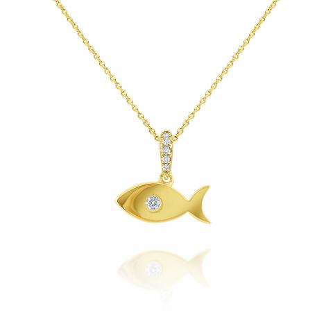 14k Gold and Diamond Fish Necklace on 16" Chain