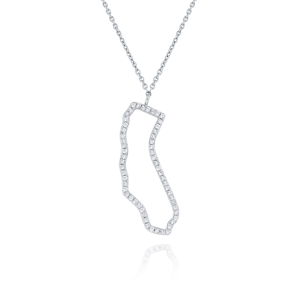 Show off your Cali roots by wearing this 14k gold and diamond necklace on a 16-18" adjustable chain. All states are available upon request.