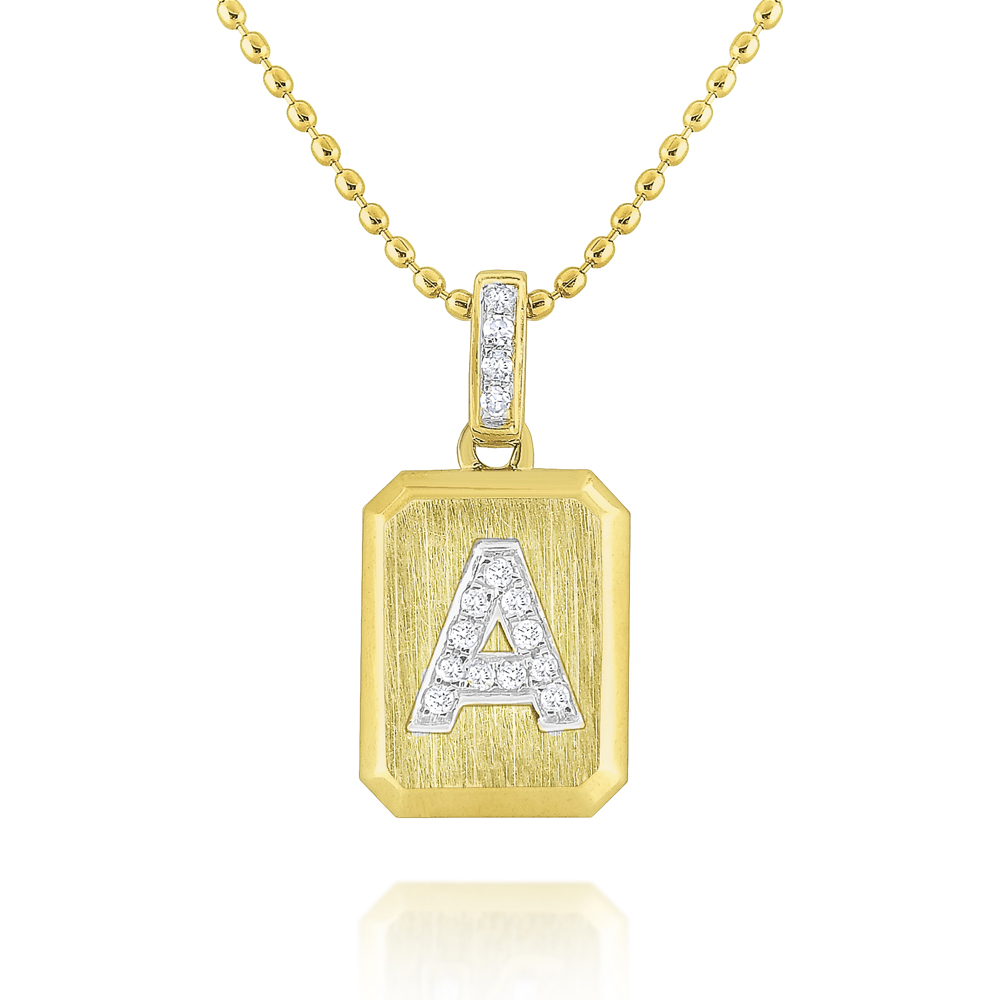 14K Gold and Diamond Ingot Initial A