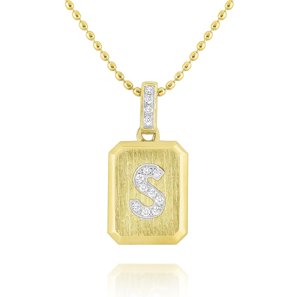 14K Gold and Diamond Ingot Initial S