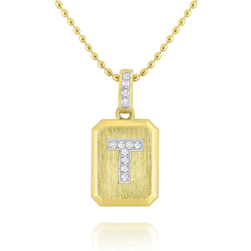 14K Gold and Diamond Ingot Initial T