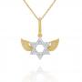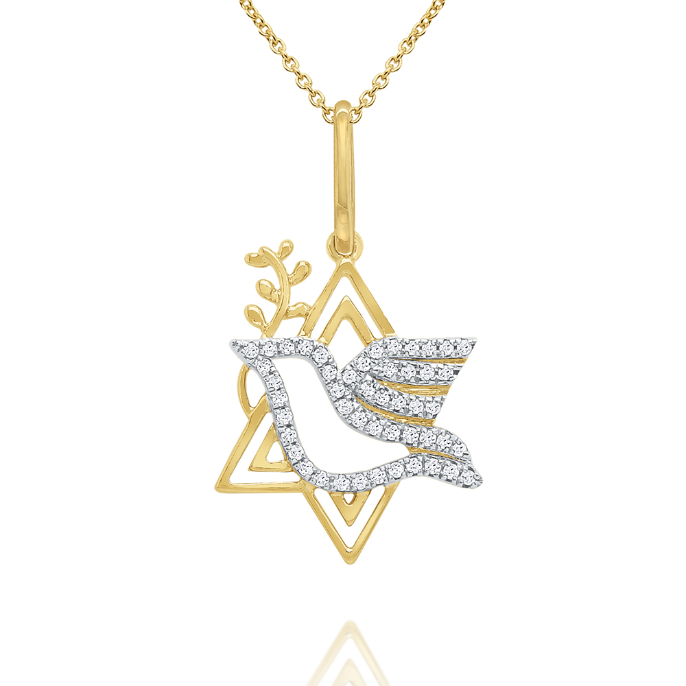 14k Gold and Diamond Jewish Star and Peace Dove Necklace