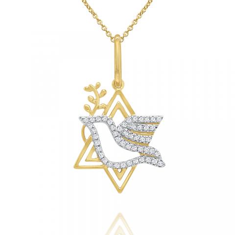 Show your faith with this diamond peace dove which sits atop a golden Star of David.