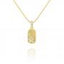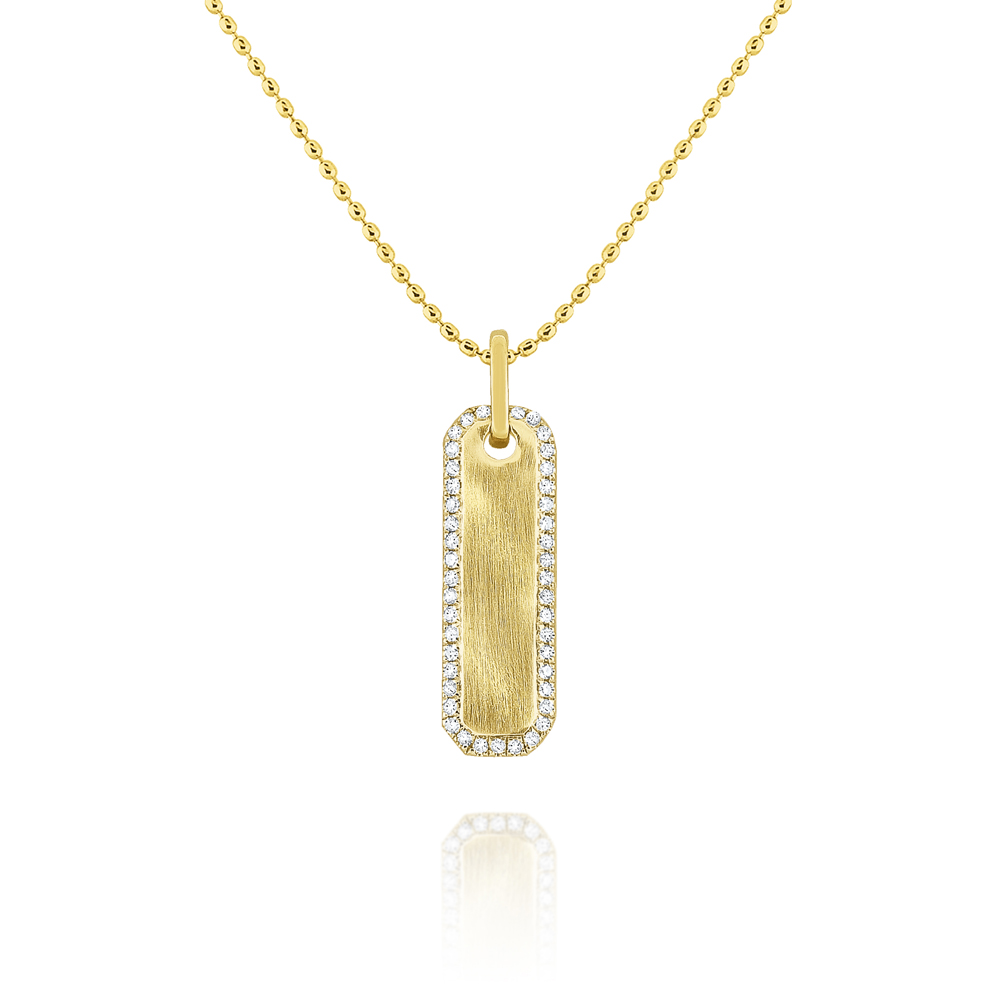 Diamonds outline a brushed gold dog tag on a golden ball chain. Stack with your other trendy charms from KC Designs.