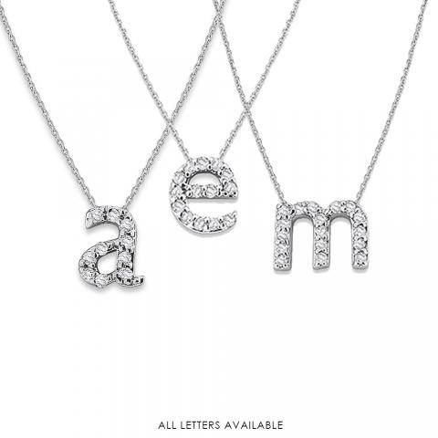 14k Gold and Diamond Lowercase Typewriter Initial, 16" Chain