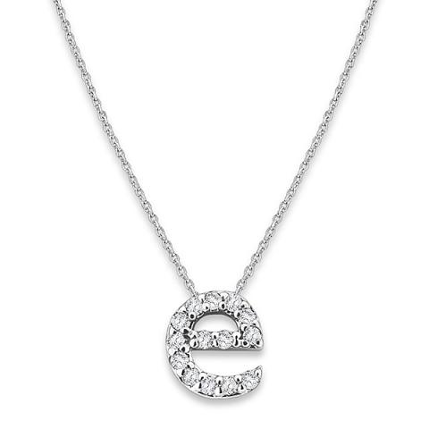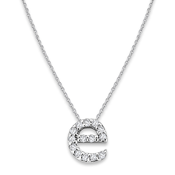If your name is Eleanor, Emma or Evelyn, why not treat yourself to a beautiful and trendy piece of jewelry that reflects your unique personality. This stunning diamond baby typewriter initial "E" necklace is sure to attract attention, especially with the 14 dazzling .08 carat total weight diamonds that make up the "E". Shown here in 14K white gold.