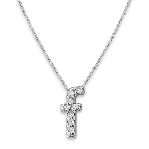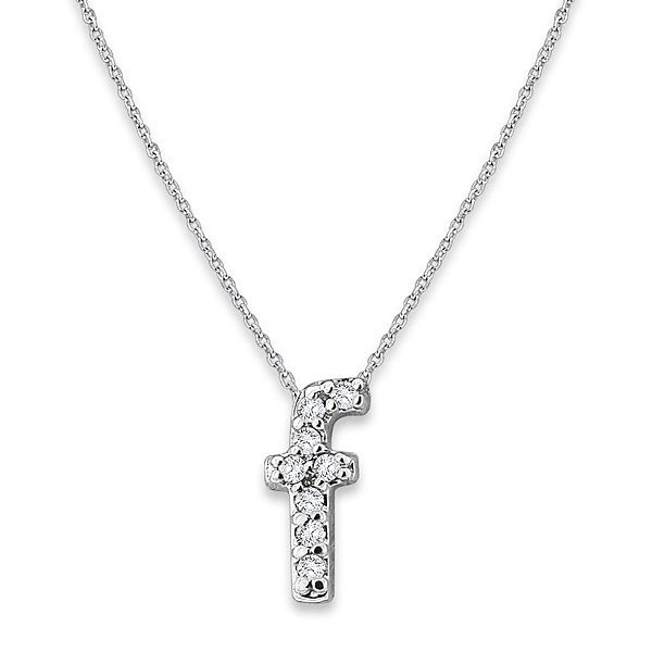 Diamond Baby Typewriter Initial "F" Necklace in 14k White Gold with 8 Diamonds weighing .05ct tw.
