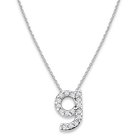 Diamond Baby Typewriter Initial "G" Necklace in 14k White Gold with 16 Diamonds weighing .09ct tw.