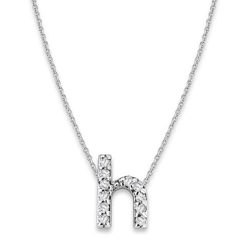 Diamond Baby Typewriter Initial "H" Necklace in 14k White Gold with 11 Diamonds weighing .06ct tw.