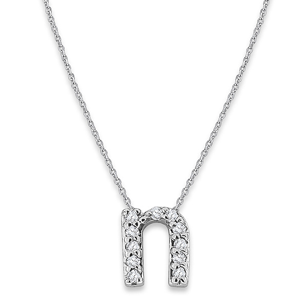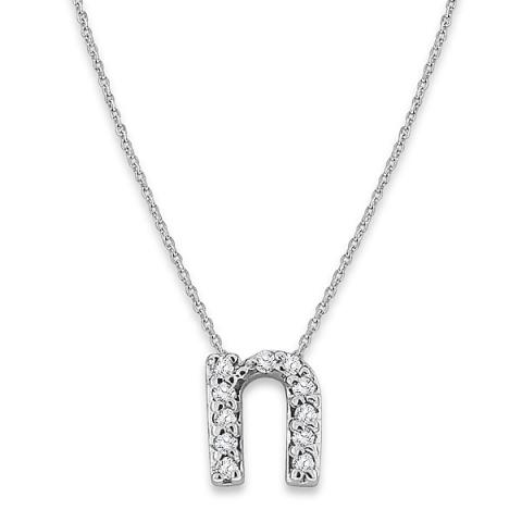 Diamond Baby Typewriter Initial "N" Necklace in 14k White Gold with 11 Diamonds weighing .06ct tw.