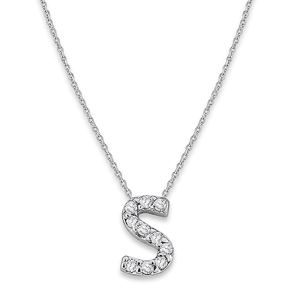 Diamond Baby Typewriter Initial "S" Necklace in 14k White Gold with 10 Diamonds weighing .06ct tw.