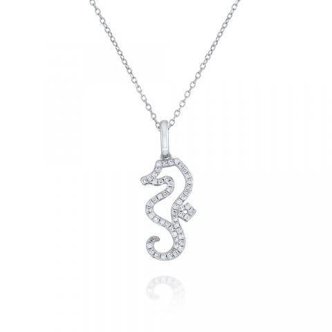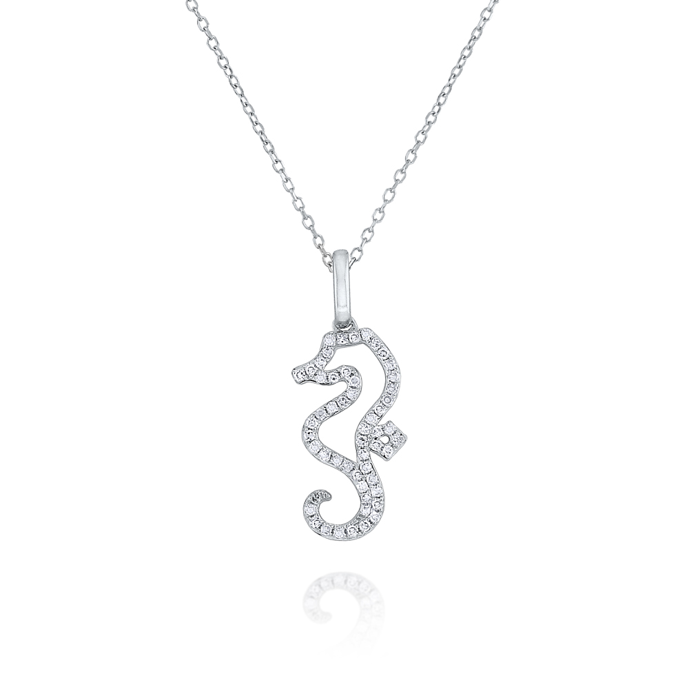 Add some sparkle to your day at the beach with this adorable gold and diamond seahorse necklace.