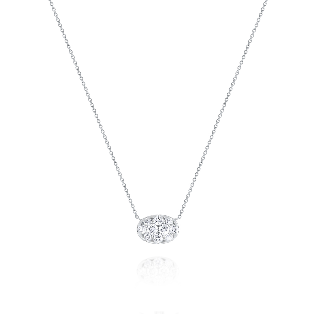 Perfect for stacking, this small, simple diamond oval cluster necklace is just the thing.