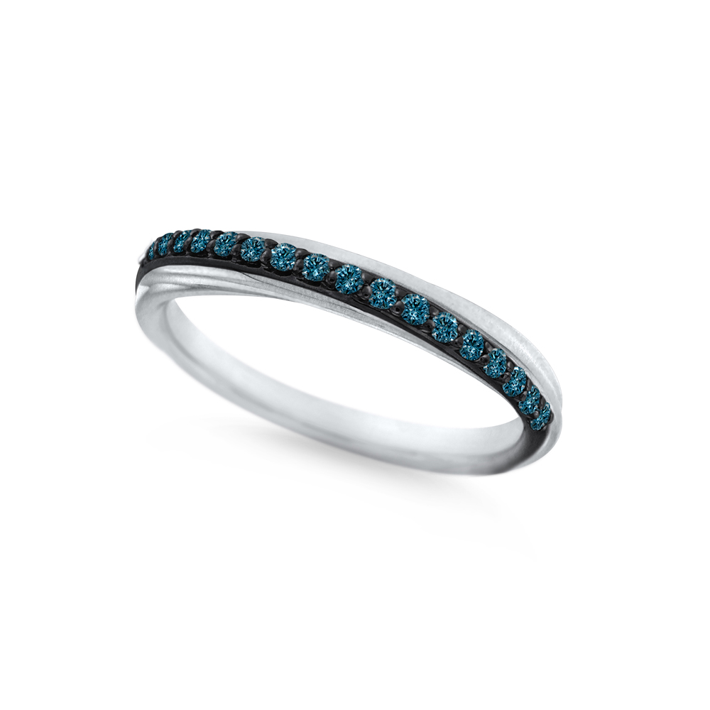 Beautiful blue diamonds set in white gold add just the right amount of color to your collection of diamond band stack rings.