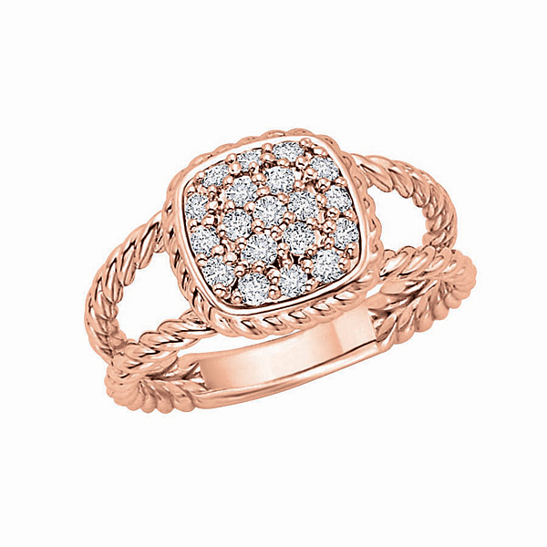 Diamond Large Cushion Ring in 14k Rose Gold with 19 Diamonds weighing .38ct tw.
