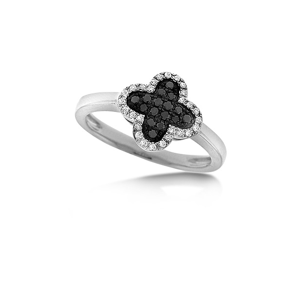 Black And White Diamond Clover Ring in 14k White Gold with 44 Diamonds weighing .20ct tw.