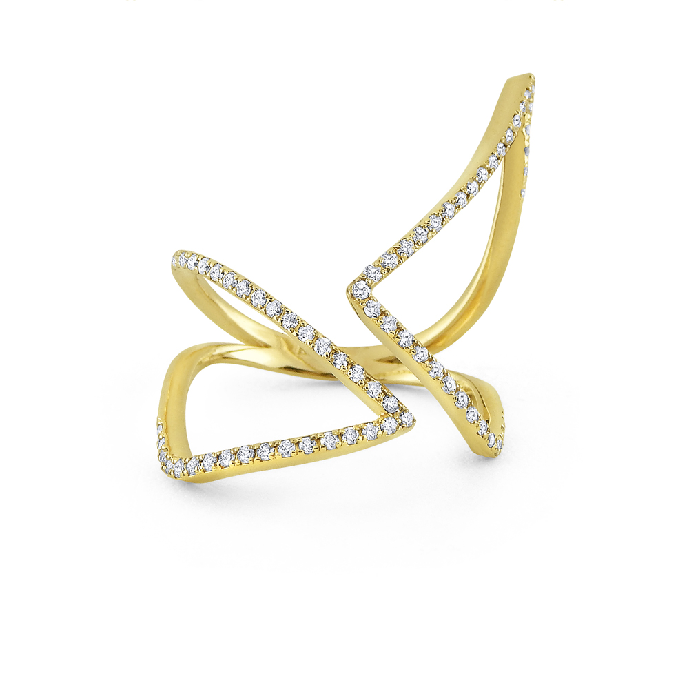 Simple geometry and linear movement make up this unique gold and diamond ring.
