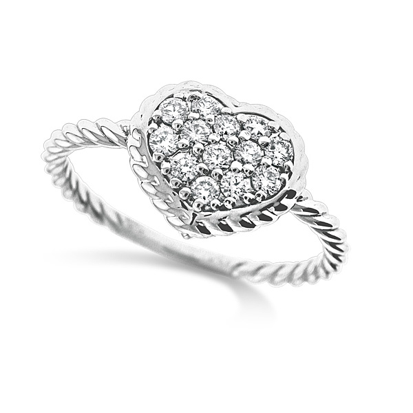 Diamond Heart Ring with Twisted Band in 14k with 13 Diamonds weighing .27ct tw.