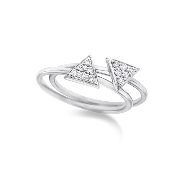 Stacked rings are super trendy right now so join the group with these rings in a fun triangular shape. Their cool factor can't be beat, and the delicate 14k white gold band with 6 diamonds, weighing .06ct tw., glimmer brightly. They will quickly become part of your permanent collection.