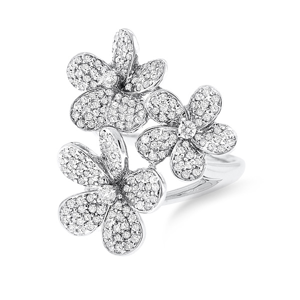 Diamond Triple Flower Ring in 14k White Gold with 203 Diamonds weighing .93ct tw.