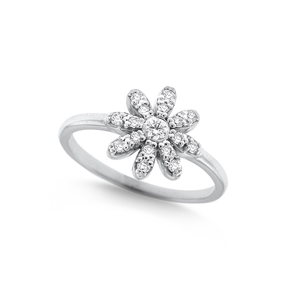 Diamond Daisy Ring in 14k White Gold with 17 Diamonds weighing .23ct tw.