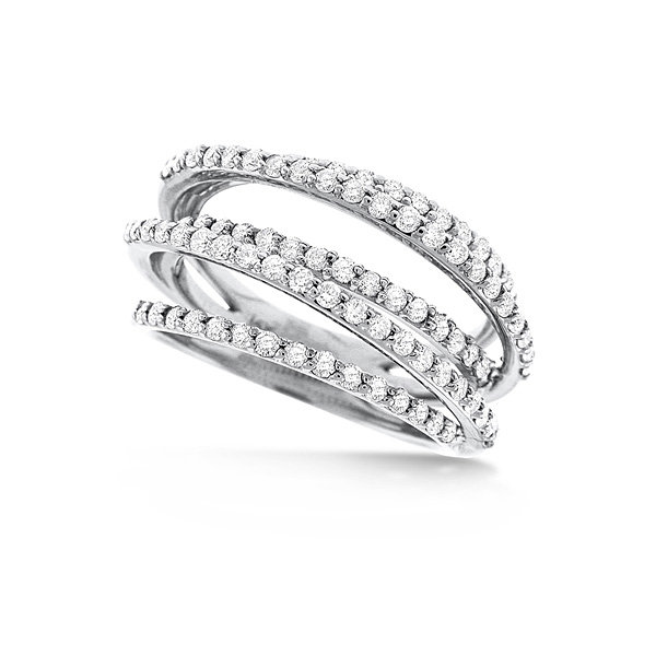 Gold and diamond bands criss cross and intertwine to form this stunning ring.