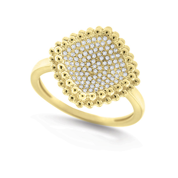 Diamond Cushion Cluster Ring in 14k Yellow Gold with 99 Diamonds weighing .24ct tw.