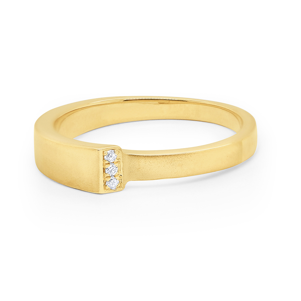 Simple yet elegant, this golden band with just a touch of diamond sparkle is the perfect addition to your stack ring collection.