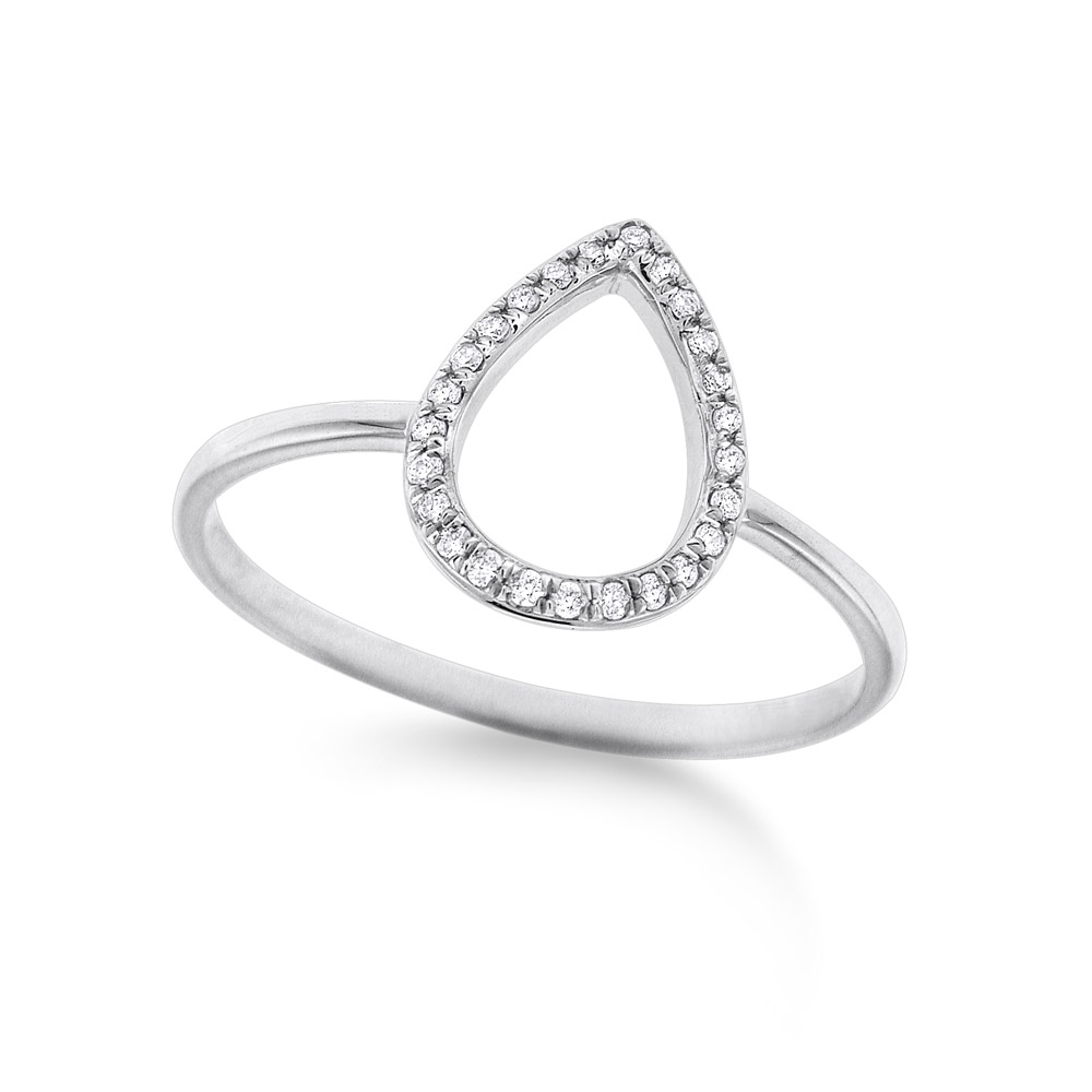 Diamond Open Pear Shape Ring in 14K White Gold with 25 Diamonds Weighing .07ct tw