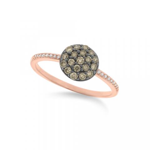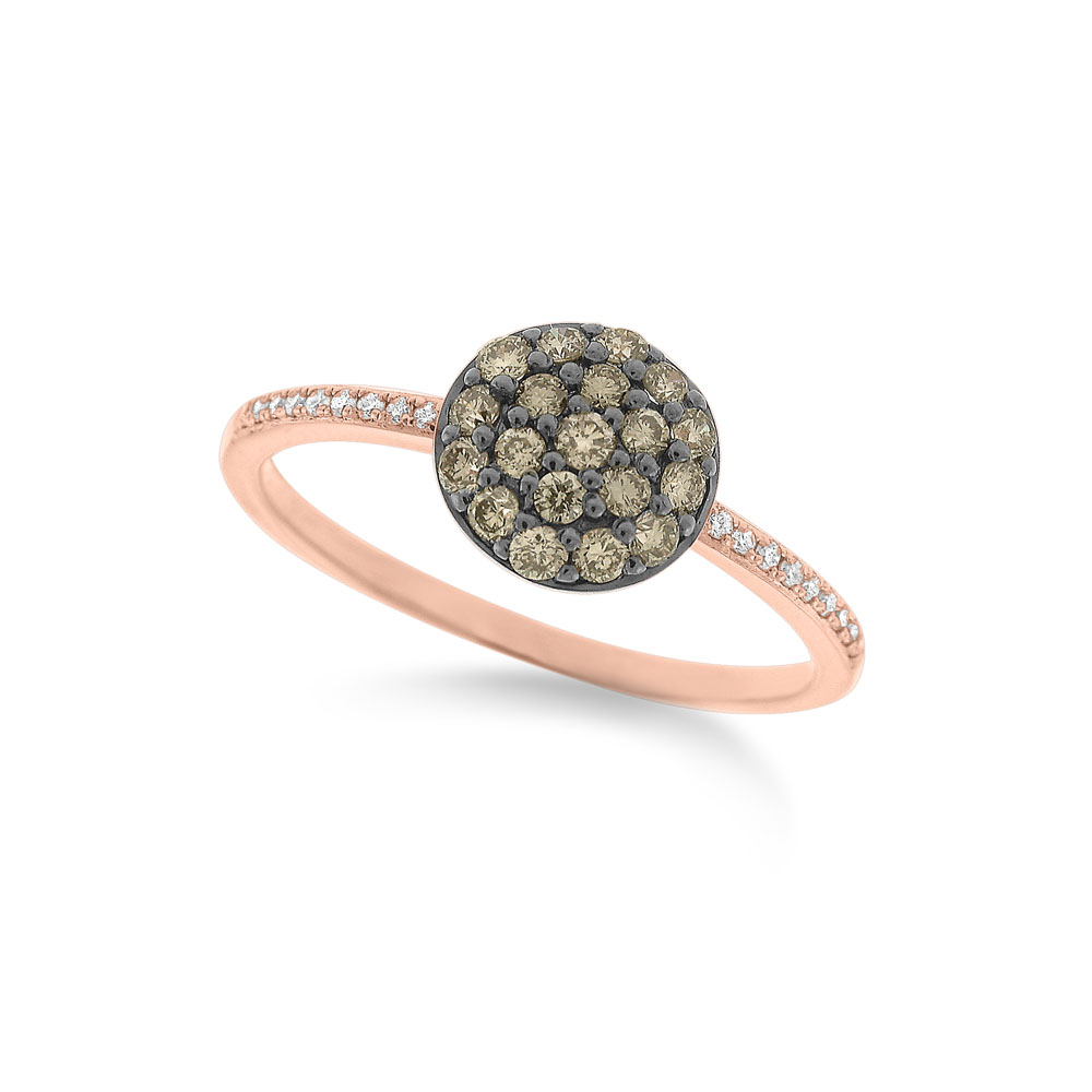 Champagne and White Diamond Pave Disc Ring in 14K Rose Gold with 37 Diamonds Weighing .36ct tw