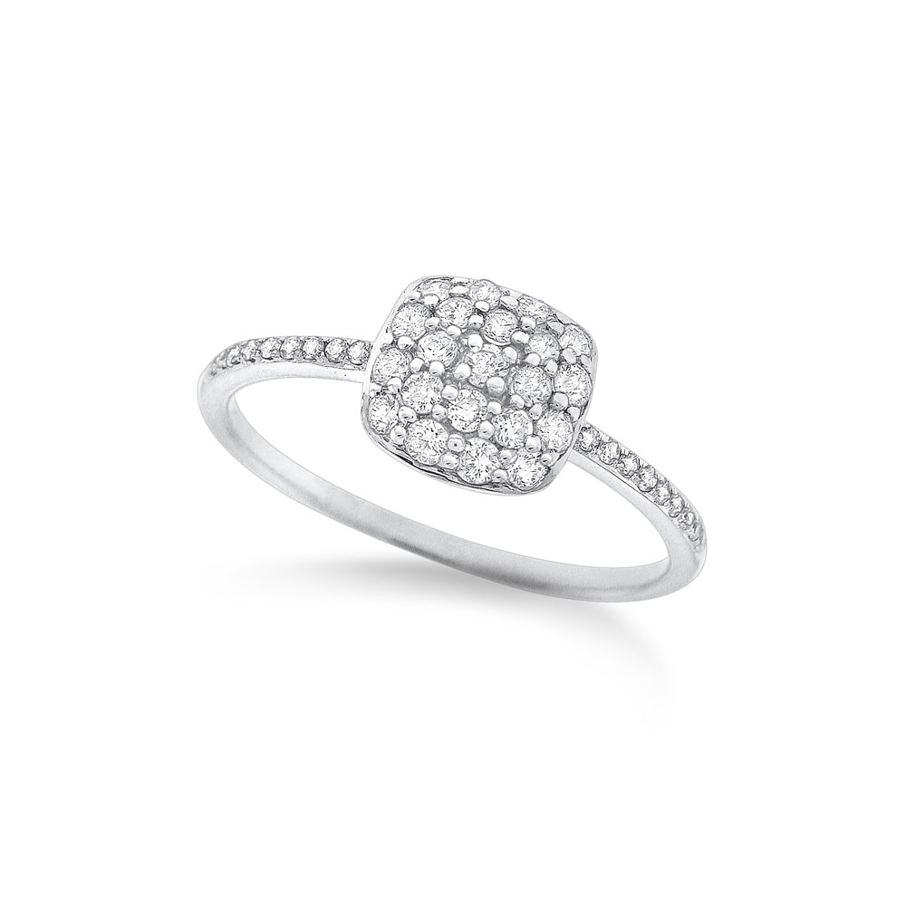 Diamond Pave Cushion Shape Ring in 14K White Gold with 39 Diamonds Weighing .37ct tw