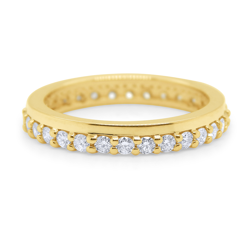Whether worn as a wedding band or as a fashion stack ring, you can't go wrong with this modern sparkler.