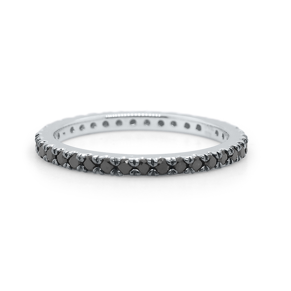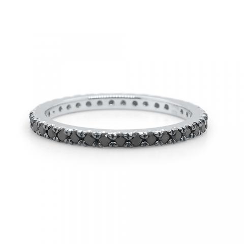 This black diamond eternity ring is the perfect addition to your stack ring collection. The diamonds are set in 14k gold with a black rhodium finish.