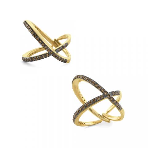 An asymmetrical 14K yellow gold band is complemented by a row of champagne diamonds giving the piece that extra pop!