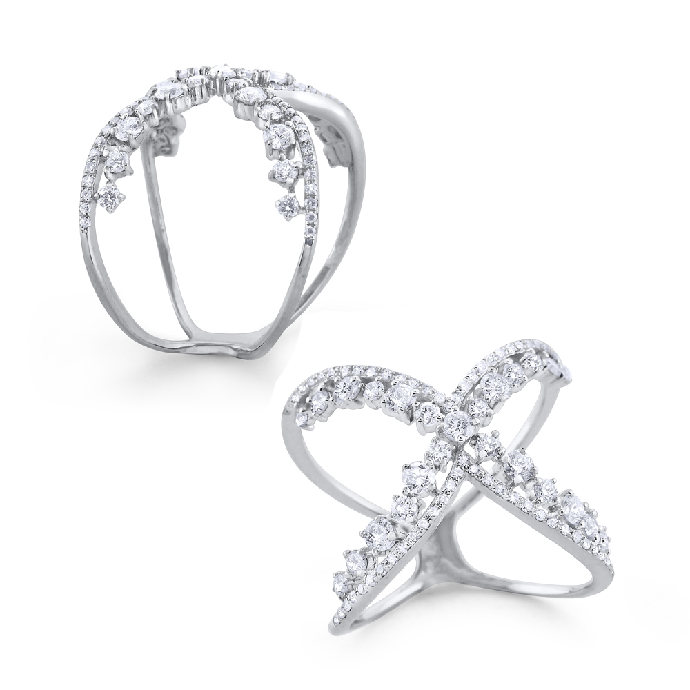 14K Double the Diamonds Crossover Ring