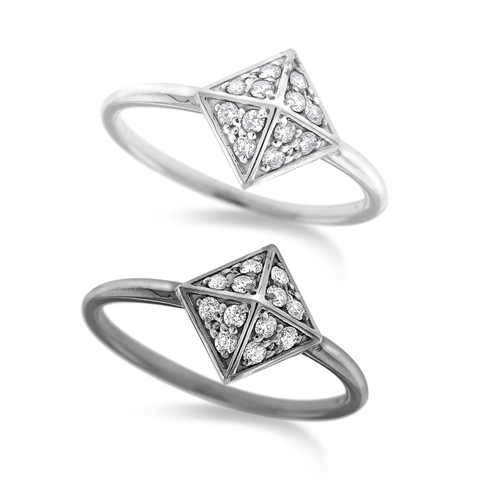 Diamond Pyramid Ring in 14K White Gold with 12 Diamonds Weighing .15ct tw