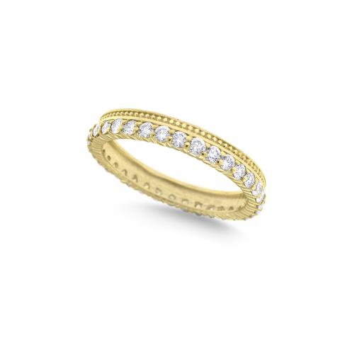 14k Gold and Diamond Eternity Band with Milgrain Detail