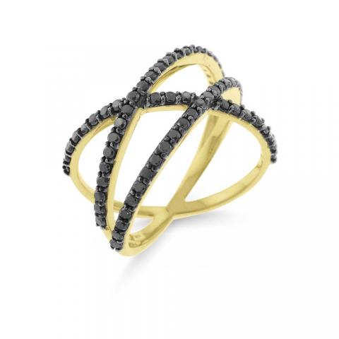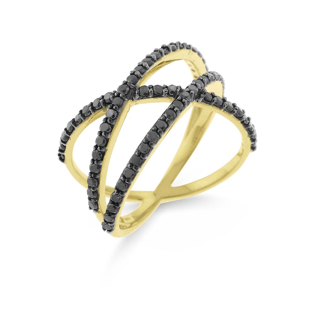 Life is always going to throw us curveballs, but this beautiful black diamond roller coaster ring is a perfect reminder to ��������go with the flow.�������� Set in 14K yellow gold with 65 diamonds weighing .79ct tw, this is a real knockout. She will love that you admire her sass.
