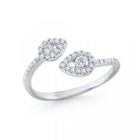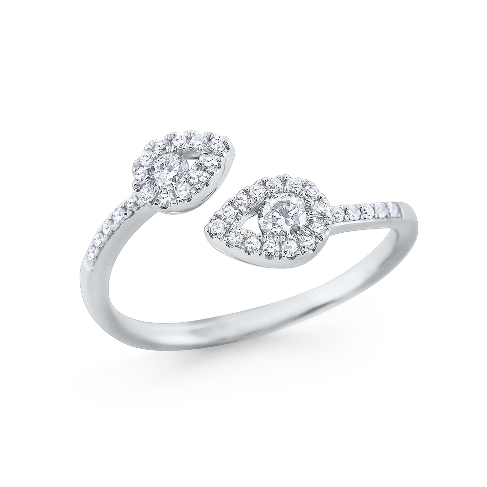 A elegant but simple bypass design ring using a cluster of diamonds to form a sparkling pear shape.