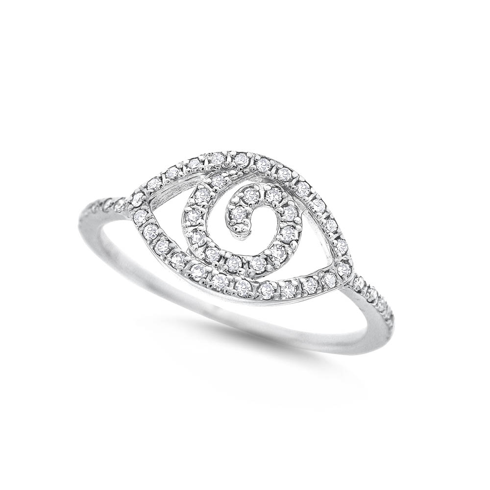 Diamond Evil Eye Ring in 14K White Gold with 49 Diamonds Weighing .17ct tw