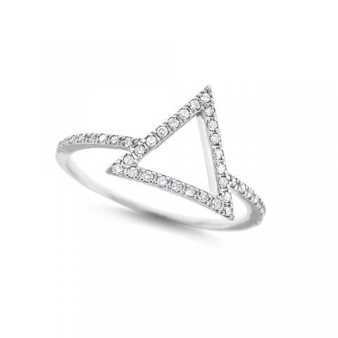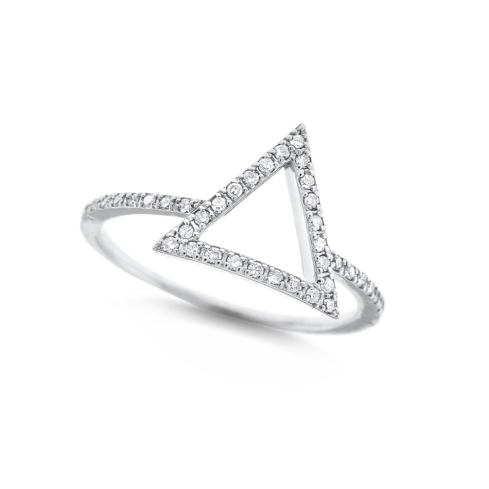 Today's modern girl will love this contemporary diamond open triangle ring. Set in 14K white gold with 40 sparkling diamonds weighing .15ct tw, this is a beautiful choice for an everyday ring. Whether you are dressing up or wearing jeans, this ring will always hit its mark.