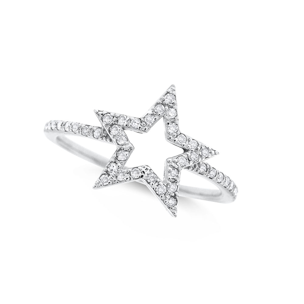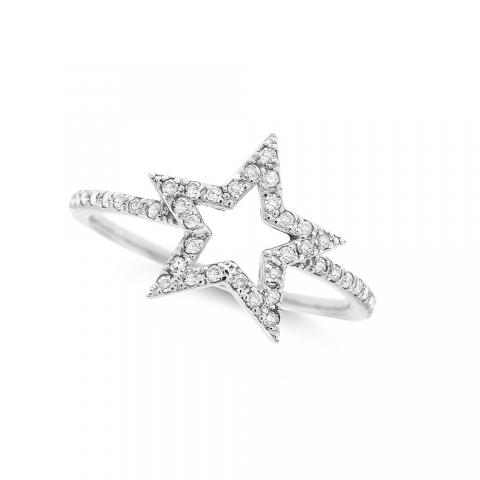 Diamond Open Star Ring in 14K White Gold with 41 Diamonds Weighing .15ct tw
