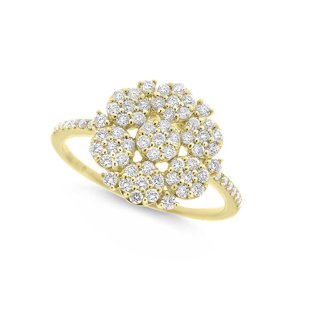 Diamond Floral Style Ring in 14K Yellow Gold with 69 Diamonds Weighing .52ct tw