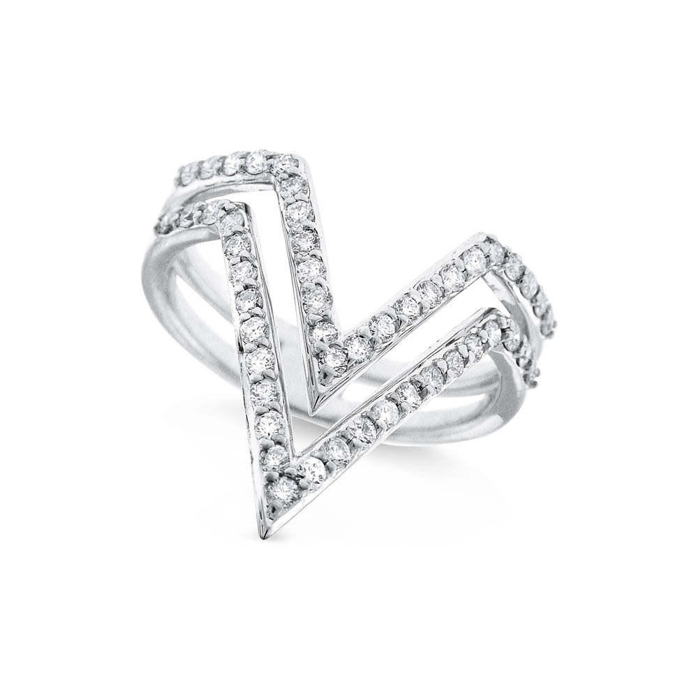 Diamond Double "V" Ring in 14K White Gold with 48 Diamonds Weighing .49ct tw