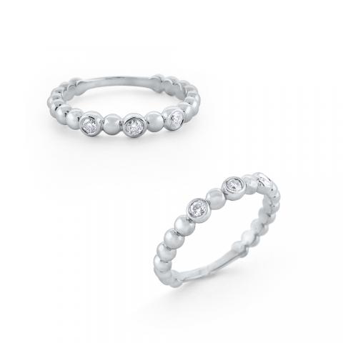 Three round brilliant diamonds are offset by shining gold spheres, drawing the eye to this fun and stylish piece. Perfect for stacking with your other KC favorites!