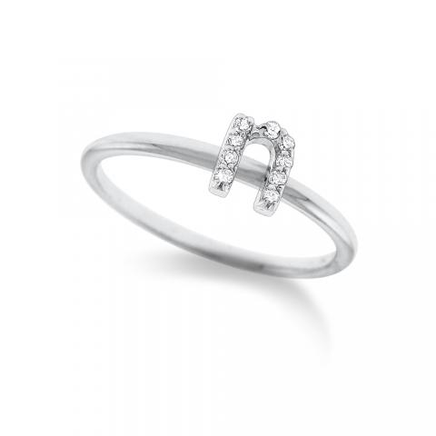 Diamond Typewriter Initial "N" Ring
