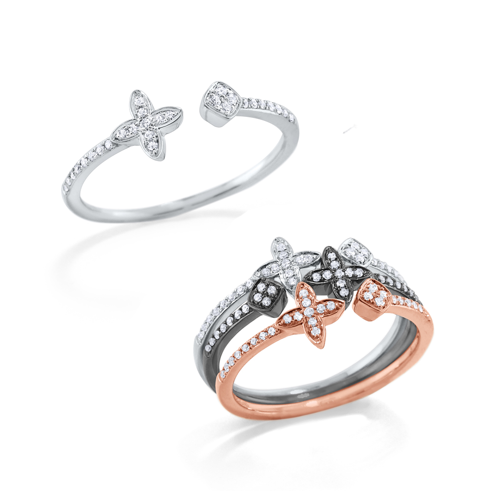 Diamond Bypass Stack Ring Set in 14 Kt. Gold